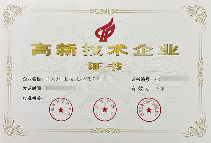 九游机械制造有限公司于2016年成为国家高新技术企业